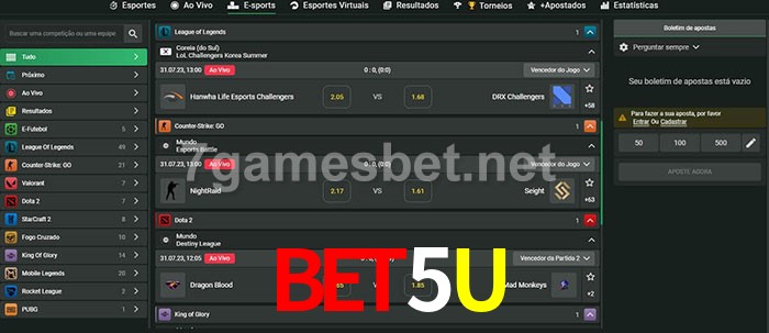 O Bet5U oferece uma grande seleção de opções de apostas em e-sports com probabilidades competitivas